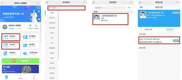 宝鸡市人民医院感染性疾病肝病科乙肝临床治愈门诊挂号就诊流程:关注“陕西省宝鸡市人民医院微信公众号”,点击右下角“智慧诊疗”,进入挂号系统,注册完善个人信息,然后点击“当日挂号”,勾选并点击“同意”,进入挂号页面,点击“内科系统”,找到“感染性疾病肝病科门诊”,点击并进入,即可看到“乙肝临床治愈门诊”几个字,再点击挂号缴费完成挂号,前往感染性疾病肝病科门诊就诊即可(目前由于门诊改造,乙肝临床治愈门诊暂挂靠感染性疾病肝病科门诊)。