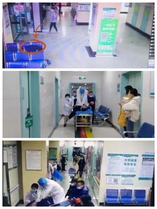 韩先生刚坐到住院大厅的椅子上,就突然胸闷气短,两眼一黑,脚下一软,顺着座椅溜下去昏倒在了地上。此时已是下午5点40分,下班后的护士权丁莉突然发现住院大厅休息区有一男子昏倒在地,她连忙呼救,于是一场争分夺秒,紧密协作,科学施治的急救就此展开……