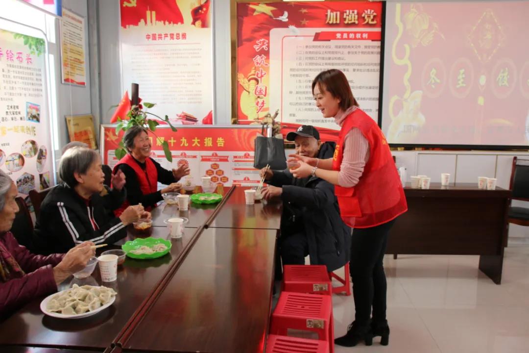 值此冬至,志愿者们和社区的工作人员一起为辖区的空巢老人、保洁人员包起了饺子。大家撸起袖子,拌馅儿,揉面,擀皮,分工协作,和乐融融,让社区的老人们在寒冷的冬日感受到了浓浓的关怀和温暖,让温情在热腾腾的饺子中不断传递。习总书记指出“让所有老年人都能老有所养、老有所依、老有所乐、老有所安。”志愿者们纷纷表示我们不仅要关注老年人的身体健康,还要关注、关心、慰问老年人的心理、精神健康,要深怀敬老之心,倾注爱老之情,笃行为老之事,让老年人体会到社会大家庭的温情和暖意。