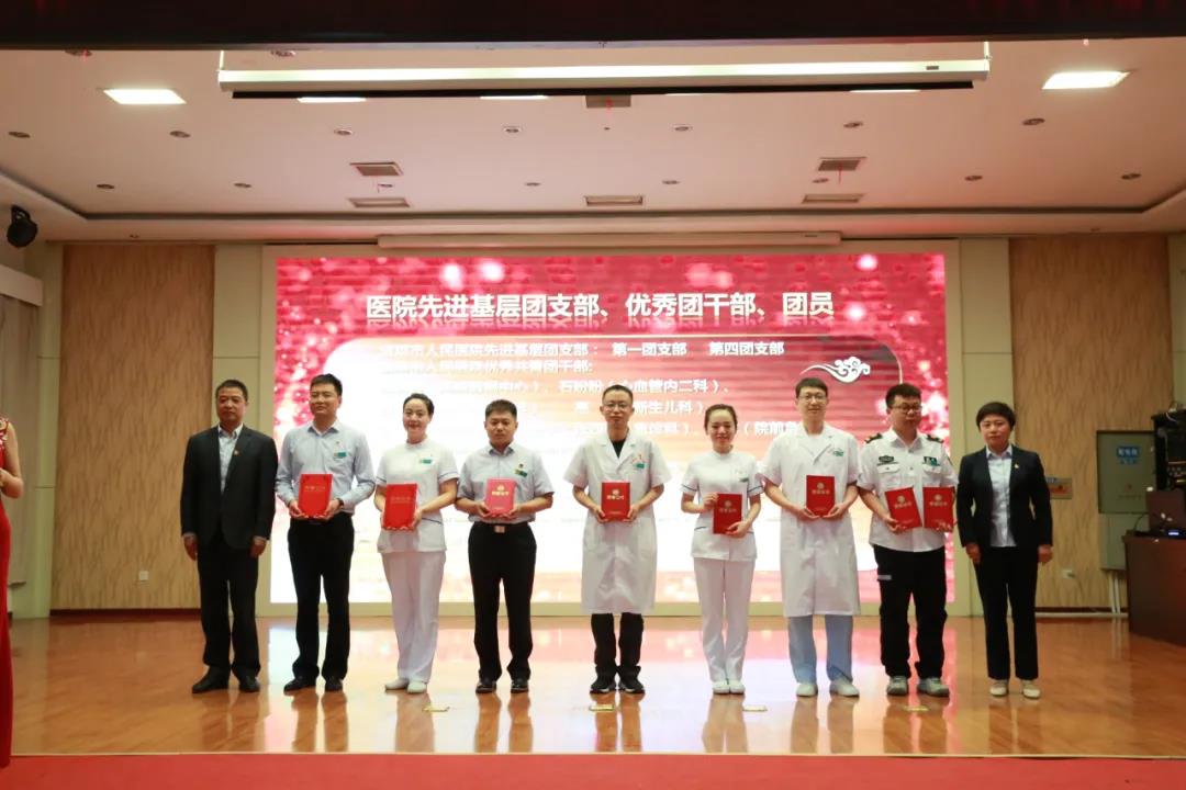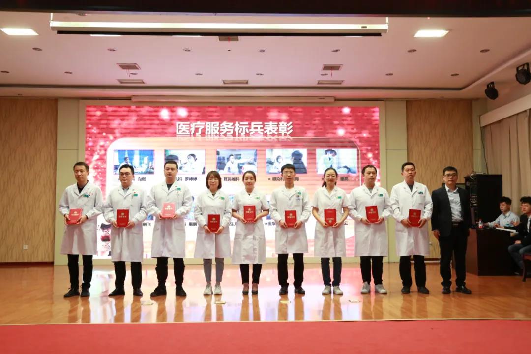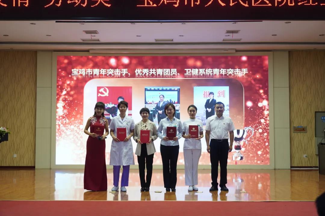 宝鸡市卫健委团委书记谭卫国、党委副书记、纪委书记王立军、副院长朱晓伟、总会计师王海燕、总药剂师宋军妹为获奖集体及个人颁奖;
