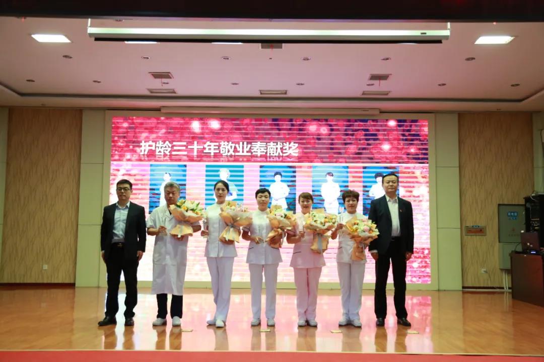 党委书记李凌,院长、市急救中心主任李竹林为护龄30年敬业奉献奖颁奖;